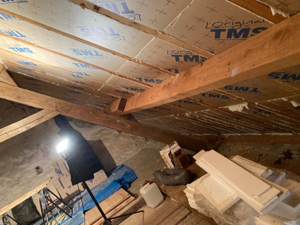 Wij gaan weer naar boven, isolatieplaten op maat zagen, plaatsen en purren. Een eentonig klusje maar om 18:30 uur is het klaar! Kunnen we ook weer afvinken van onze to-do-lijst. Check.