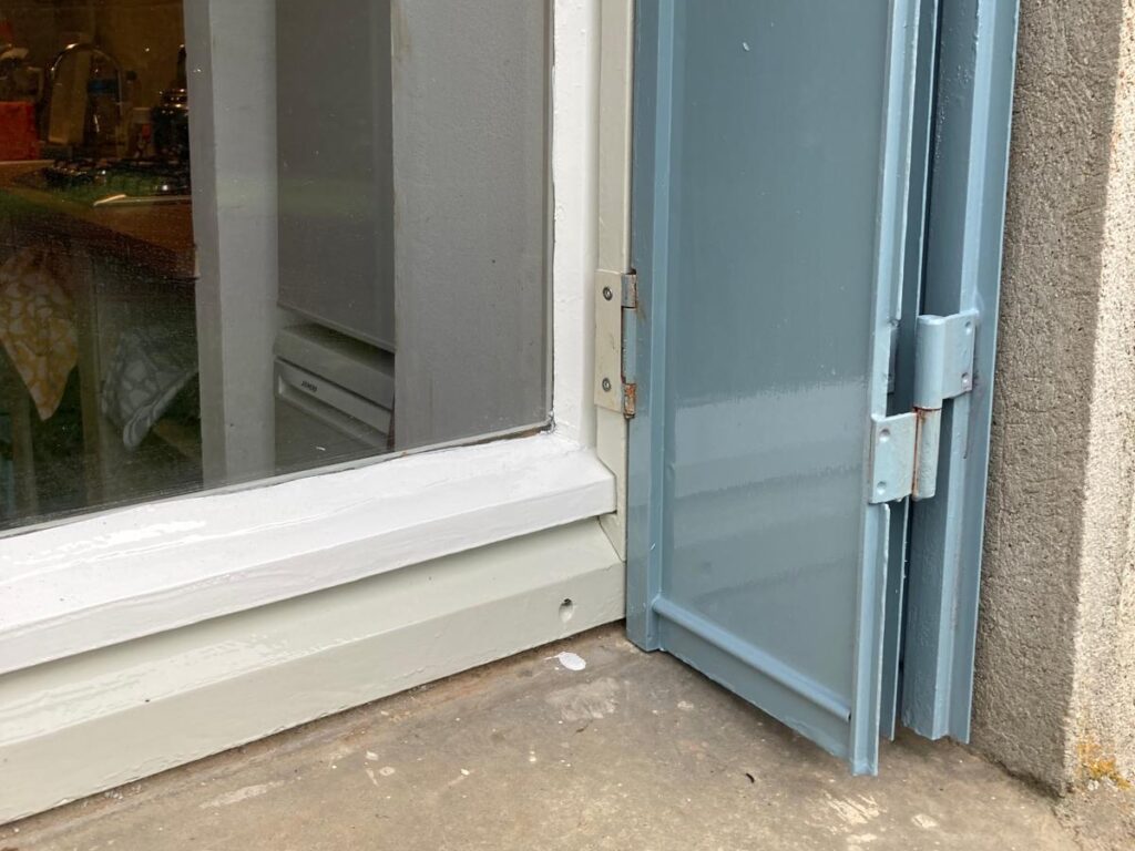 De werkweek is weer begonnen. We zijn er op tijd uit, de mensen van Eurl Merle komen vandaag weer aan de weg werken. Wij starten met het ophangen van de metalen luiken aan de achterzijde van de boerderij. Arjan spuit alle scharnierpunten in met WD40 en dan worden ze weer vastgeschroefd aan het kozijn. Wauw, echt heel mooi dit. Precies zoals we gehoopt hadden. Eindelijk de eerste blauwe luiken aan onze boerderij. J’adore!