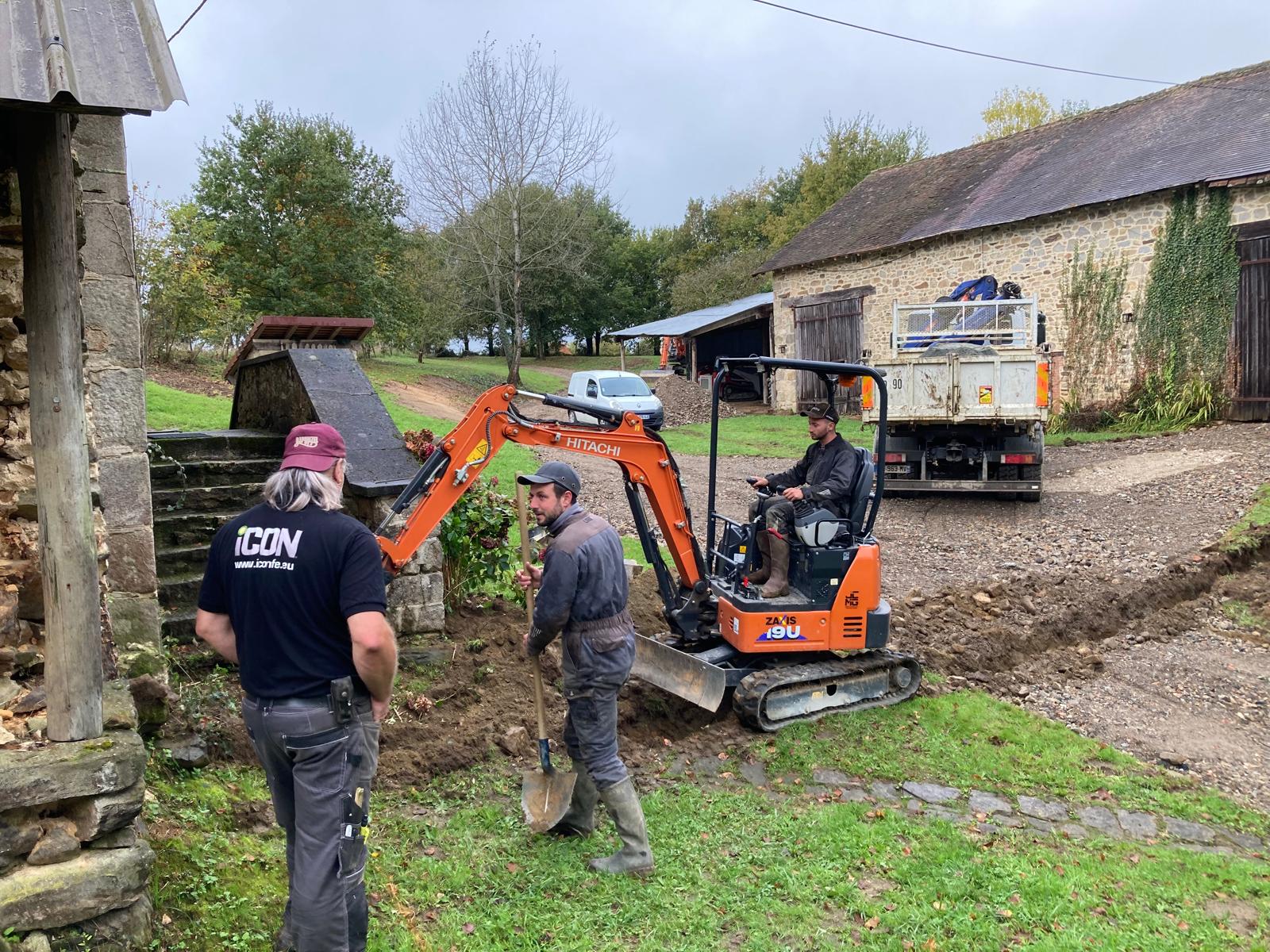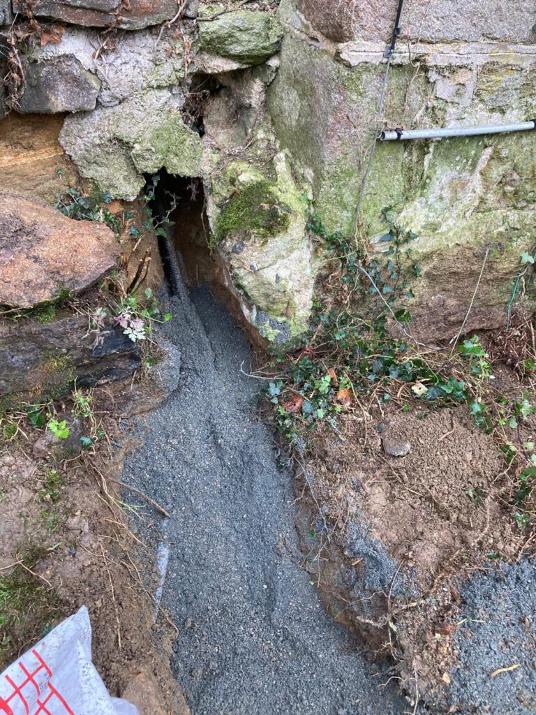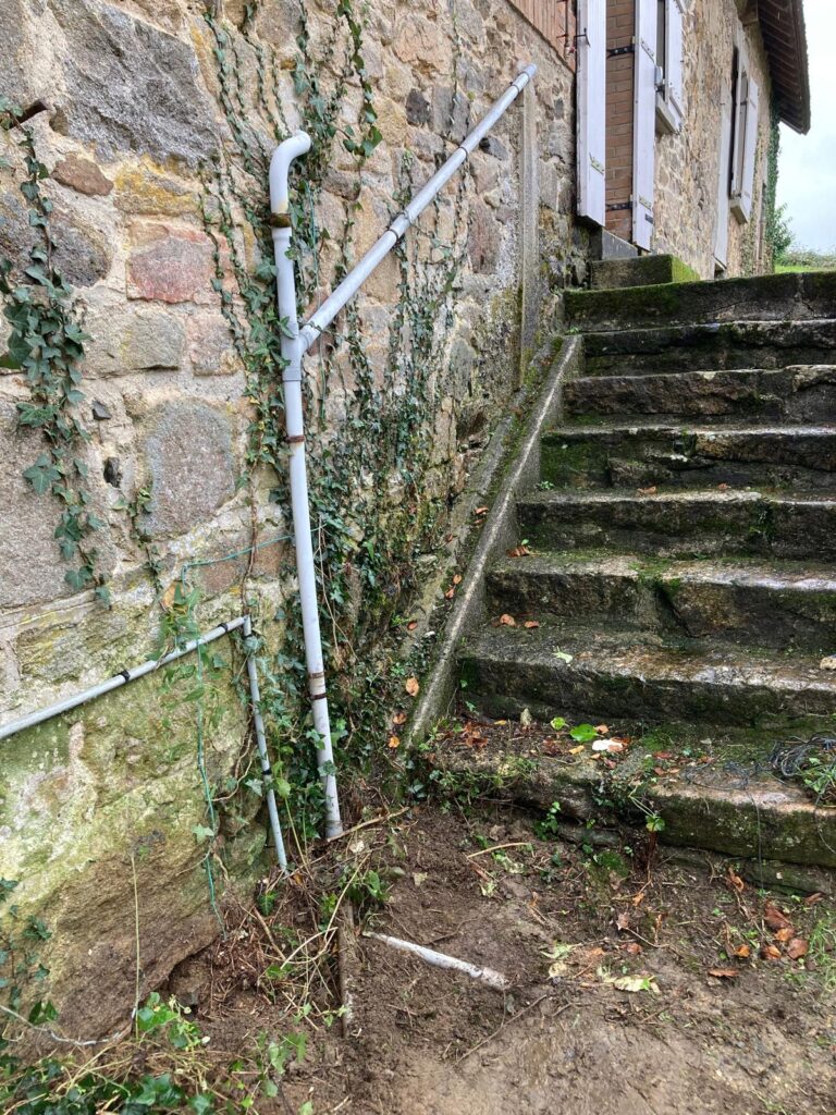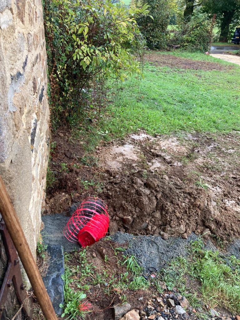 Buiten zijn Simon en zijn collega druk bezig met de weg. De wals is nog steeds kapot. Maar ze graven de geulen voor de leidingen van het huis naar de grote stal en van het huis naar de varkensstal. We hadden alles al klaarliggen dus we konden ze direct erin gooien. De mannen moesten voorzichtig graven bij het huis want het is daar een wirwar aan leidingwerk. Ondanks hun oplettendheid trekken ze toch één waterleiding kapot. Er loopt een beetje water uit en daarna stopt het. Geen idee waar deze leiding vandaan komt of naartoe gaat. De leiding wordt gefixt en daarna komen we erachter dat dit waterleidingen zijn die naar beide stallen gaan maar met een kraan dichtgedraaid stonden. Er zat nog een klein beetje water in en dat kwam tevoorschijn toe de leiding stuk werd getrokken. Wel handig dat we nu weten dat er waterleidingen naar de stallen liggen. Onze nieuwe leidingen liggen er nu ook. Alles netjes weggewerkt onder de grond: water, stroom en internet. Dat stroom onder de grond wordt gelegd dat vinden de Fransen wel wat vreemd maar wij willen graag die kabel die van dak naar dak loopt weg hebben. En dat kan nu.
